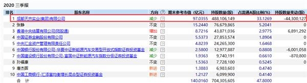 根据数据显示,在三季报数据中,大股东成都天齐实业有限公司减持了4430万股,套现金额超过10亿。