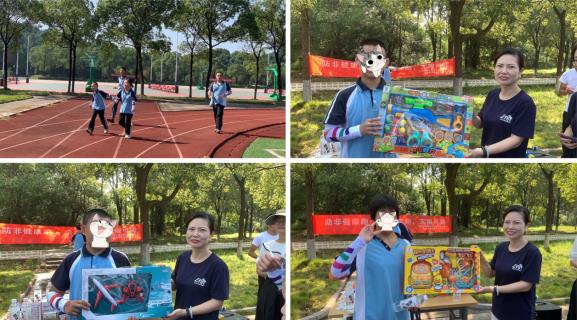阳光灿烂,晴空万里,看着孩子们一张张稚嫩的小脸一个接一个地入场,我们心中无限感慨。他们中有唐氏患者、自闭症等疾病,但脸上洋溢的笑容深深感染了我们……当我们帮他们贴脸贴、戴护臂时,他们会兴奋地说“谢谢!谢谢!”;当老师宣布跑步前三名还有玩具奖励时,大家高兴地跳了起来,都说“我要,我要”;当真正开始跑时,孩子们一个个都全力以赴往前冲,身体的疾病此刻仿佛已不再困扰他们。一圈下来,孩子们的位置渐渐拉开;有的已经跑完了两圈地,有的却还在第一圈“挣扎”;有的一路狂奔,有的脚步停了下来不停地擦汗,有的四五个相互支撑一起往前走……老师们有的站在操场边加油,有的在孩子们身边陪跑,而体育老师站在终点与完成跑步的孩子们击掌庆祝。