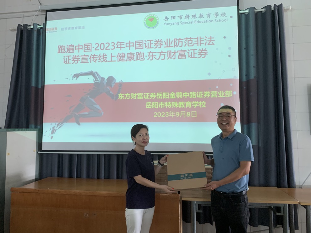 为响应跑遍中国2023年中国证券业防范非法证券宣传健康跑活动,增强人民群众对非法证券活动的防范意识和能力,保护投资者合法权益,凝聚行业信心,弘扬理性投资理念,东方财富证券投资者教育基地走进岳阳市特殊教育学校举办了“快乐奔跑,无限可能”为主题的防非健康跑活动,活动由东方财富证券岳阳金鹗中路证券营业部承办。