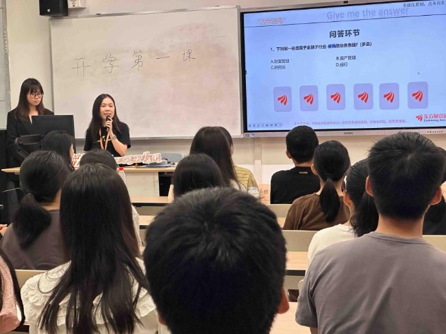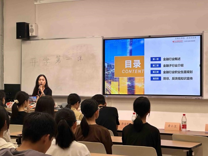 第一部分,讲师先向学生们介绍了金融行业SWOT分析、经济金融专业就业情况、金融行业分类,让学生们对金融行业有了大致的了解。