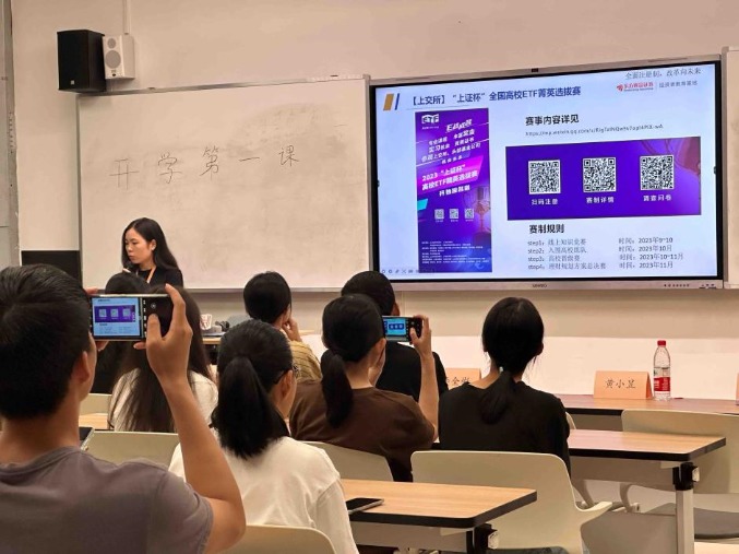 活动最后,讲师向学生们介绍了中国投资者网及东方财富证券投资者教育基地,同时向同学们介绍近期“上证杯”全国高校ETF菁英选拔赛和第二届全国ETF模拟投资菁英挑战赛,希望同学们在课余时间,能够学习更多的金融知识,积极参与高校金融赛事,提升个人综合素质。