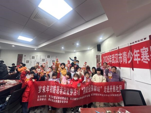为切实强化未成年人反诈防骗意识,扎实推进金融知识普及工作,积极响应湖北证监局“岁末年初防非宣传”号召,2026年2月2日,在湖北省证券期货业协会的支持下,东方财富证券投资者教育基地联合武汉市江岸区丹水池街道丹西社区,深入开展了以“防范未成年人诈骗,树立正确消费观”为主题的投资者教育活动,旨在帮助未成年人充实反诈知识储备、提升诈骗识别能力,树立理性消费观念。本次活动由东方财富证券湖北分公司和东方财富证券武汉中山大道证券营业部(以下简称“营业部”)联合承办,通过线下现场授课和线上直播的形式开展,共33名社区小朋友参加。